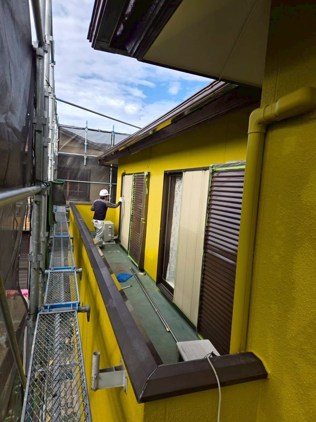 一軒一軒異なる住宅形状に合わせて、最適な足場を設置いたします。K様邸の場合も、建物の形状や隣地との距離を考慮し、安全で効率的な足場を構築いたしました。